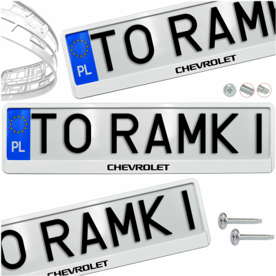 Opis produktu Ramka pod tablice rejestracyjne CHEVROLET 1 szt. biała połysk ramki do tablic napis